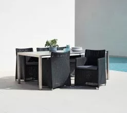 Allez Bord 4L 70×70 Marble is made by Normann Copenhagen. The table is made of marble. The Allez table and the Allez chair are inspired by classic bistro furniture. The many different combinations of tabletop material, allows you to tailor the Allez setup. Allez Table 4L 70×70 Marble is intended for outdoor use.